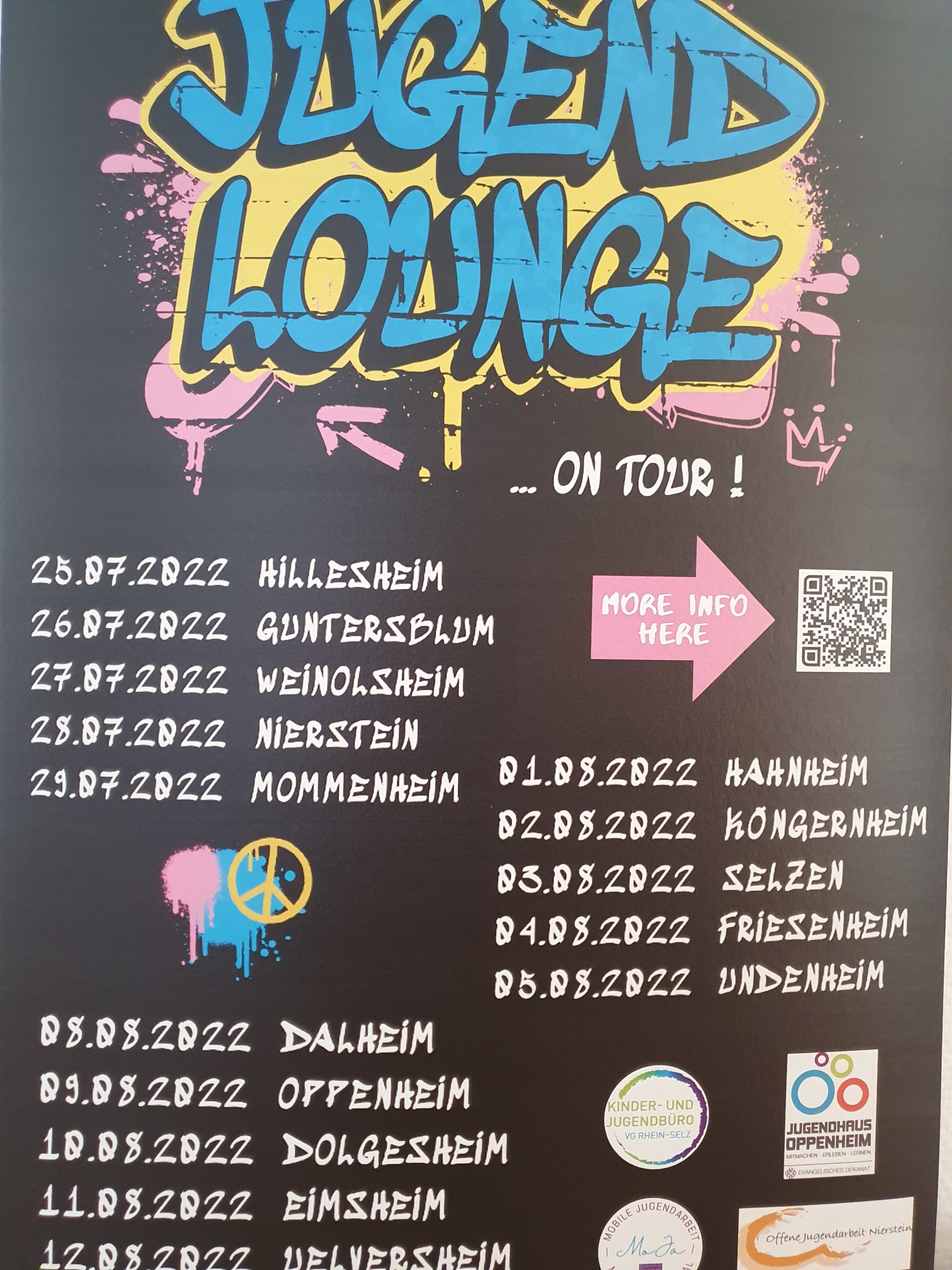 Die Jugend Lounge gastiert auf ihren Tour am Freitag, 29.7.2022 auf dem Dorfplatz in Mommenheim: Das coole Angebot für alle Mommenheimer Jugendlichen zwischen 11 – 19 Jahren ! Lounge, Coctails, Abhängen, das ist angesagt von 16 – 19 Uhr. Denn dann kommt der Veranstaltungsbus des Jugendbüros der Verbandsgemeinde. Also: Termin eintragen, kommen, gute Laune mitbringen und Spaß haben.