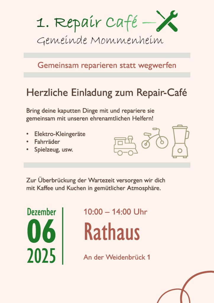 Wir laden herzlich zum ersten Mommenheimer Repair-Café ein.